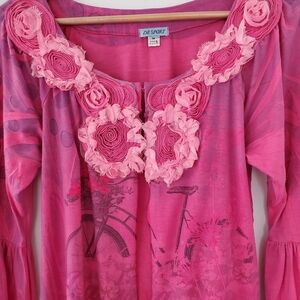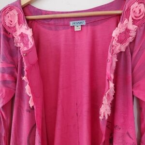 90s Pink Purple Floral Rosettes Cardigan Bell Lightweight Whimsy Girly Fairy Y2K