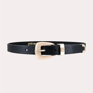 Chic and timeless Petit Moments square belt in classic black, as seen on Show Me Your Mumu. The perfect everyday accessory to elevate denim, dresses, or skirts with a sleek, modern touch.