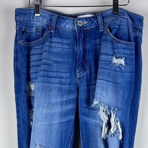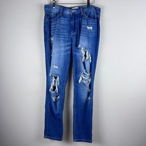 2/$14 KanCan Distressed Boyfriend Fit Mid Rise Jeans 28
