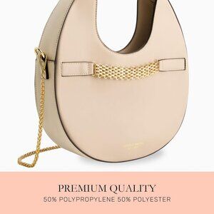 Features: This eye-catching crescent bag has a sleek silhouette, shiny gold hardware, and a sturdy, lightweight polypropylene build that’s easy to spot clean. It offers a roomy main compartment with a magnetic snap closure and an interior zip pocket, ideal for fitting your phone, keys, wallet, and makeup.