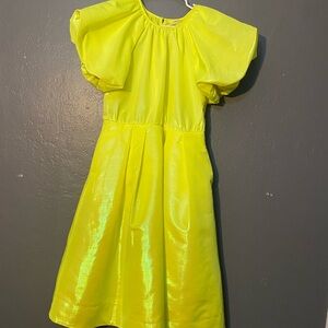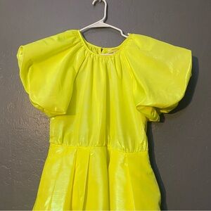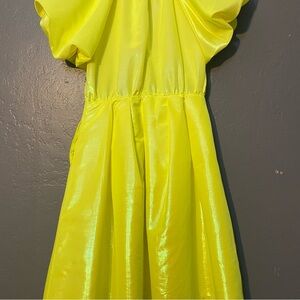 Christopher Rogers Woman Yellow Midi Dress Volume Iridescent Puff Sleeve Size M * Belt included see last picture