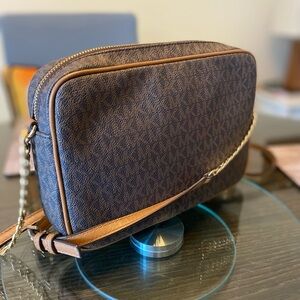 Elegant Michael Kors crossbody with signature pattern. Rich brown tone. Perfect for daily use.