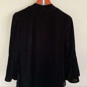 Solitaire Black Velour Long Line Long Open Front Sweater Bell Statement Sleeves
