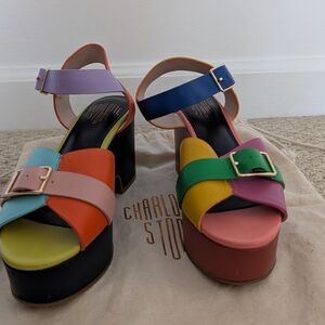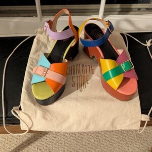 Charlotte Stone, Iconic "Rafi" Multicolor Strappy Platform Sandals