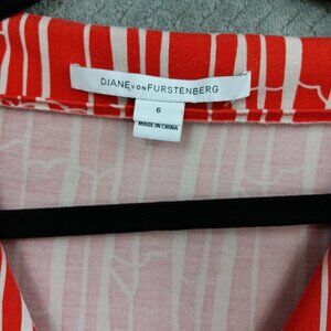 DIANE von FURSTENBERG Women's New Julian Two Wrap Dress 6 Silk Jersey Red Bamboo Print V-neck 3/4 Sleeve