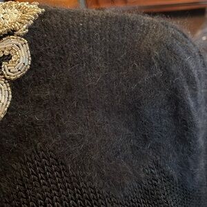 Della Knit VINTAGE sweater Women's Size M wool angora made in Hong Kong beaded shoulders and cuffs featuring beaded embellishments at the neckline and cuffs. Della Knit was known for producing embellished knitwear, particularly in the 1980s