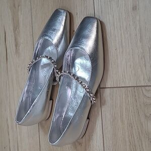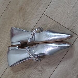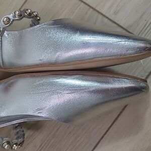 Step out in style with these elegant silver women's shoes, featuring a chic pearl detail. Perfect for any occasion. check pictures for imperfections