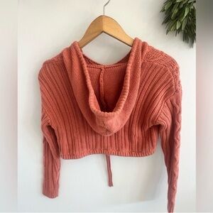 Chic V-neck sweater with cable knit design. Features a stylish tie front. Ideal for casual wear.
