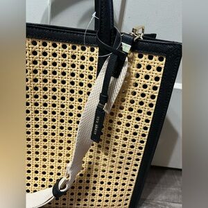 Ted Baker London Flo June Wicker Tote Bag Rattan Black Leather Crossbody