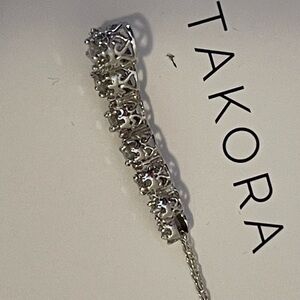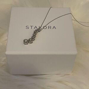 Retail price estimate $1,450 + Tax .This elegant necklace features a stunning silver finish, perfect for any occasion. The chain is delicate and dainty, but can be replaced if desired.