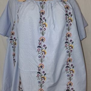 LANE BRYANT women size 22/24 Chic off-shoulder blouse with floral embroidery. Light blue fabric for a fresh look.100% cotton made in india used in excellent condition