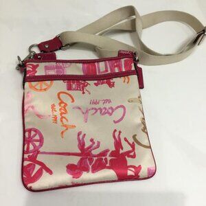 Coach Horse & Carriage Crossbody Bag Cream W/ Pink and Orange Print Leather Trim
