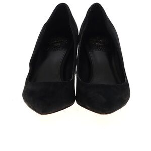 Chic black suede heels by Vince Camuto. Perfect for elevating any outfit. Still has life left in it, but has visible flaws that may require repair. May be from a best-selling brand that is eligible for resale due to high demand.