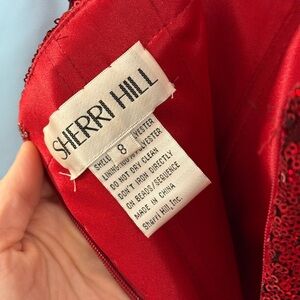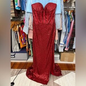 Sherri Hill 55491 Strapless Corset Bodice Red Sequin Prom Pageant Dress Size 8