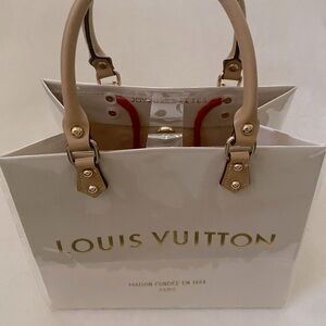 Authentic Louis Vuitton Limited Edition Holiday Shopping Tote. This shopping bag has been fully covered and protected with pvc. These covered bags have become very popular over the years and are a great addition to your luxury wardrobe. Red ribbon bow ( bow clip hardware may vary ) and chain detail added on the front. Size is approximately 10”L x 8.75”H x 5.75”W. 🚫NO TRADES🚫