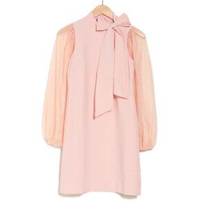VINCE CAMUTO Mesh Dot Sleeve Knee Length Shift Dress Bow Neck Blush Pink Party