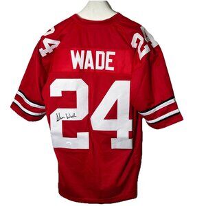 Autographed in black marker on the "2" on the back. Wade was an All-American and 2020 Big Ten Defensive Back of the year. Wade was drafted by the Baltimore Ravens, spent 3 years with the New England Patriots, and is now in the Chicago Bears organization.