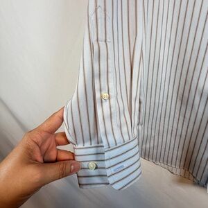 Stafford Men's Performance White/Black Striped Dress Shirt Classic Fit 15/32-33