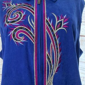 Make a bold fashion statement with this vibrant blue vest by Bob Mackie. He is known for his wearable art designs, featuring eye catching details and artistic flare. A true collectors find!