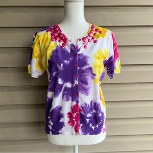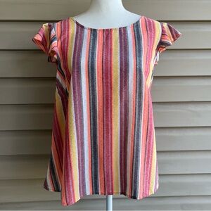 This is a beautiful confetti knit pullover sweater from Habitat, ladies size Medium. The cozy knit, 53% polyester/47% acrylic, is a unique multicolor yarn blend, primarily burnt orange, that creates a textured confetti appearance. Features a mock neckline, fold over cuffs, and a relaxed, boxy fit for effortless style. Perfect for layering or wearing on its own, this sweater is ideal for casual outings, a day at the office, or a weekend getaway!