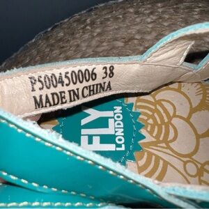 Turquoise Leather Wedge Strappy Sandals with a Lace Up Vamp. 2.5โ Heel, 1โ Platform. Fly London Size Chart in Photos 38 = 7.5 - 8. Beautiful Like New Condition ๐ญ