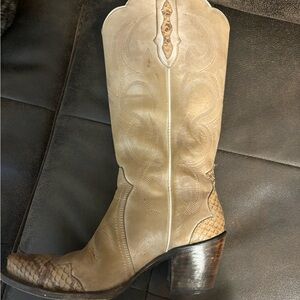 Stylish Beige and Brown Heeled Boots IDYLLWIND by Miranda Lambert