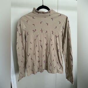Laura Scott Tan Floral Longsleeve Mockneck Shirt size small