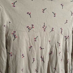 Beautiful neutral top with flowers throughout!