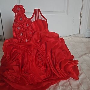 Toddler Girl's Custom-Made Rose Petals Chiffon Dress With Petticoat Red 12-Month