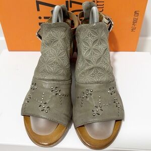 Miz Mooz Womens Carey Green Sandals Studded Cut Out Open-toe Distressed Leather boho