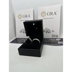 New GRA Diamond Moissanite Ring. Halo Pave Setting. Oval Cut Moissanite w/ Side Stones; all stones are moissanite. Tested w/ Gemoro Testorrosa Professional Diamond Tester. Looks like a real diamond ring. You cant tell the diff. Brilliant & sparkly.