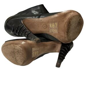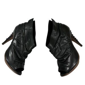 All Saints Spitalfields Jacks Place Shri Black Pleated Leather Peep Toe Stiletto Ankle Boot EU Sz36/US Sz6