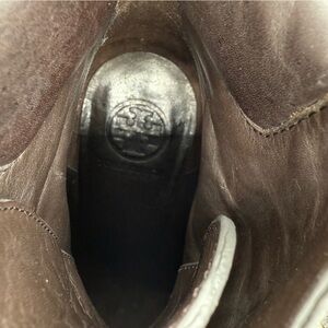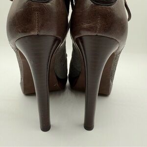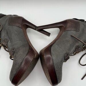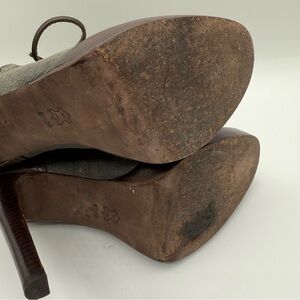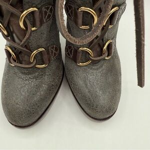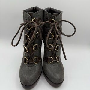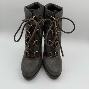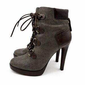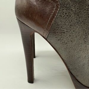 Tory Burch Lawson Bootie Pewter Brown Leather Platform Stiletto Ankle Boots 8.5