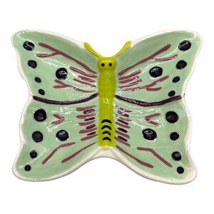 Butterfly Ceramic Hand Painted Signed Trinket Soap Dish Whimsy Jewelry Holder