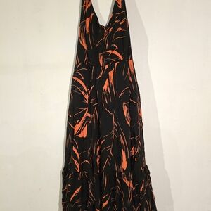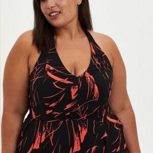 Elegant black and red halter dress with a stylish pattern. Perfect for any occasion.