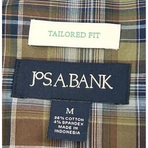 Jos A Banks Tailored Fit Green Plaid Long Sleeve Button Up Mens Medium Shirt