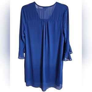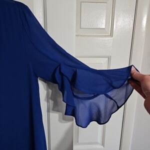 Umgee Royal Blue Ruffle Sleeve Sheer Chiffon Tunic Top Women’s Small Flowy Prep