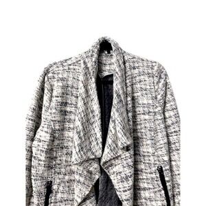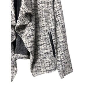 Chico's Size M Heathered Black and White Waterfall Jacket Textured Knit Academia