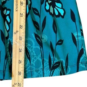 Y2K Teal Floral Blouse with Black Accents Baby Doll Empire Waist Medium 🖤