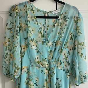 Calvin Klein Aqua Floral High Low Dress