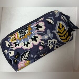Women’s Vera Bradley Charmont Meadow, full zip around wallet. Leather Vera logo on front. 2- slide in pockets. 8- card slots. 1- plastic ID slot. Zippered coin purse. The corners of the wallet are worn, see pictures. The wallet is in otherwise good condition and fully functional.
