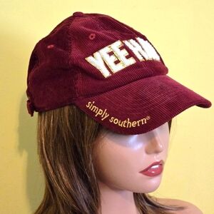 Simply Southern Burgundy Corduroy YEEHAW Baseball Cap Sparkle Lettering