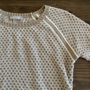 Women's Banana Republic Beige White Cotton Crew Neck Sweater L Minimalist