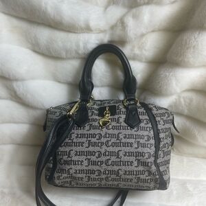 Juicy Couture small black Gothic satchel /shoulder bag gold tone accents top zipper the inside lining has a side zipper two side pockets pre owned in good used condition the inside lining has small yellow stains no tear see all pictures any questions please message.