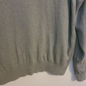 Men's gray v-neck, lightweight sweater by Polo by Ralph Lauren, size XL. Signature embroidered pony symbol on the left chest. 100% pima cotton, machine washable. Excellent pre-owned condition; no flaws.