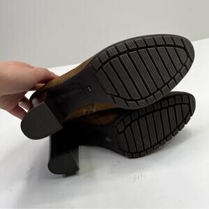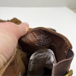 Laleen buckled dress booties from Style & Co. Brown faux leather upper with buckled straps around the ankles. Rounded toes with 2.75" stacked block heels. Zippers on the inner ankles. New in box - retail $80.