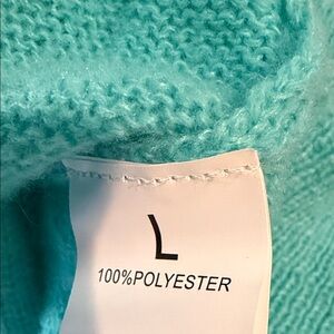 Elevate your wardrobe with this chic turquoise cardigan, adorned with charming floral embellishments. Perfect for adding a touch of elegance to any outfit.