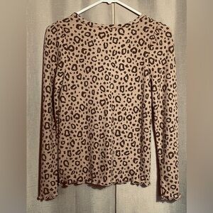 NWT Cat & Jack Girls 14 Leopard Long Sleeve Tee Brown & Black