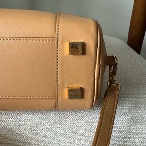 Authentic LOEWE Amazona 23 leather bowling bag in the beautiful Warm Desert color. A timeless, elegant design crafted from very soft and supple natural leather.