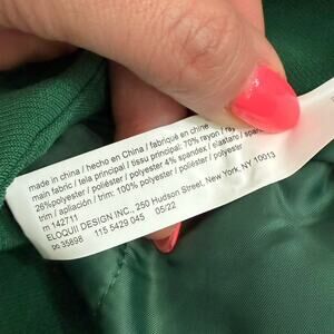 Details: Hunter green tapered trousers in a soft rayon polyester blend with comfortable pull on styling. Features an elastic waistband, front slash pockets, and faux back pockets for a polished office ready look. No belt loops for a clean streamlined fit. Perfect for work, internships, or professional outfits. Ships within 2 business days. All sales final.